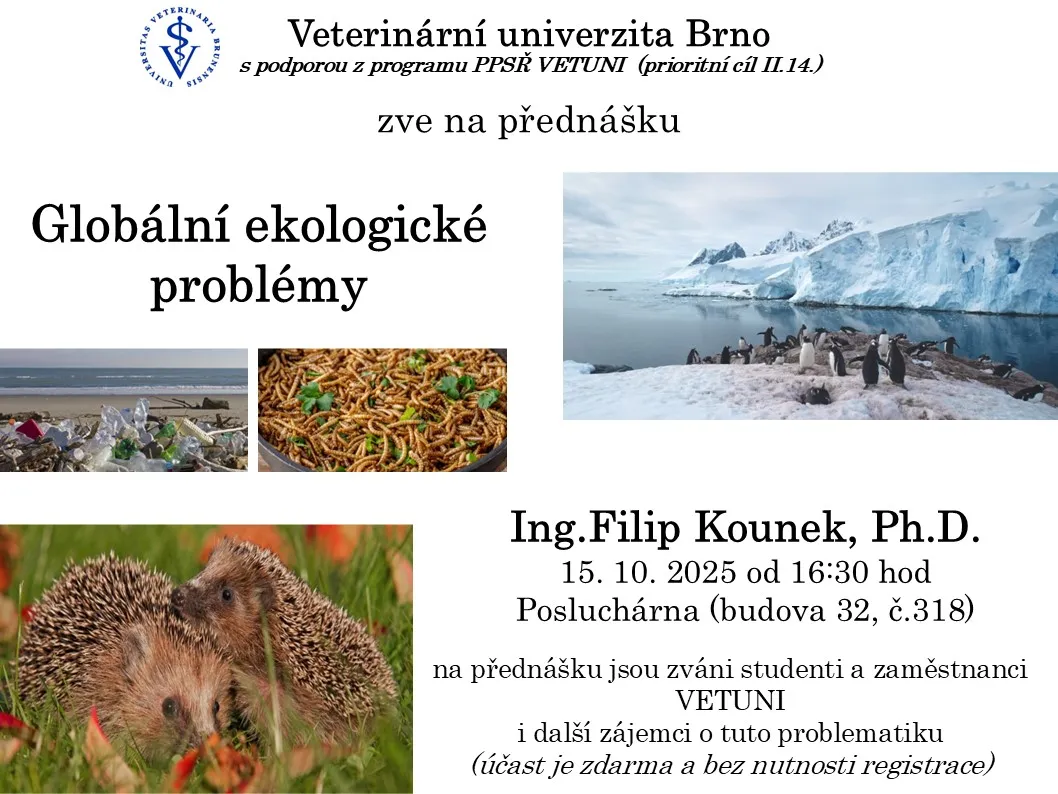 Veterinární univerzita Brno s podporou z programu PPSŘ VETUNI (prioritní cíl II.14.) si Vás dovoluje pozvat na mimořádnou sérii přednášek zaměřených na Ekologické aspekty civilizačního působení člověka.